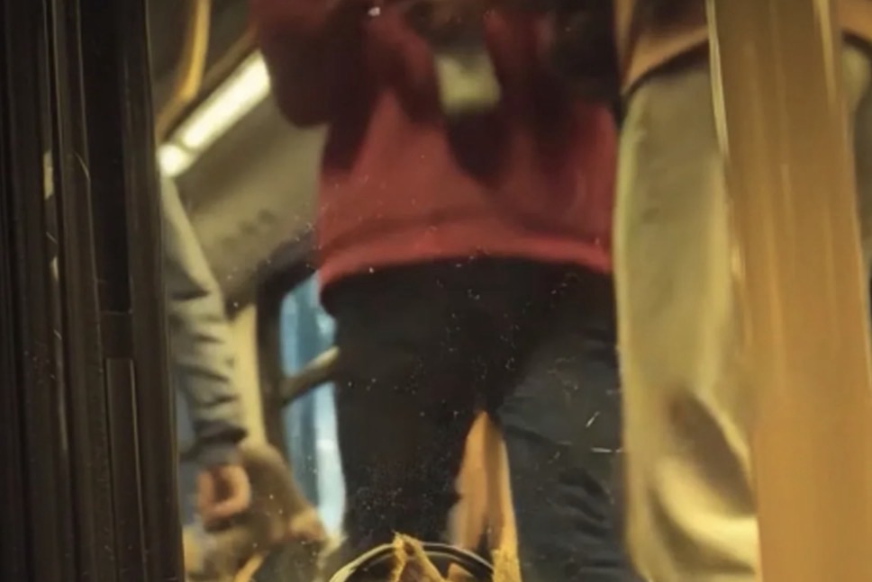 oversized headphones inside a crowded public transport carriage. But that whimsy is