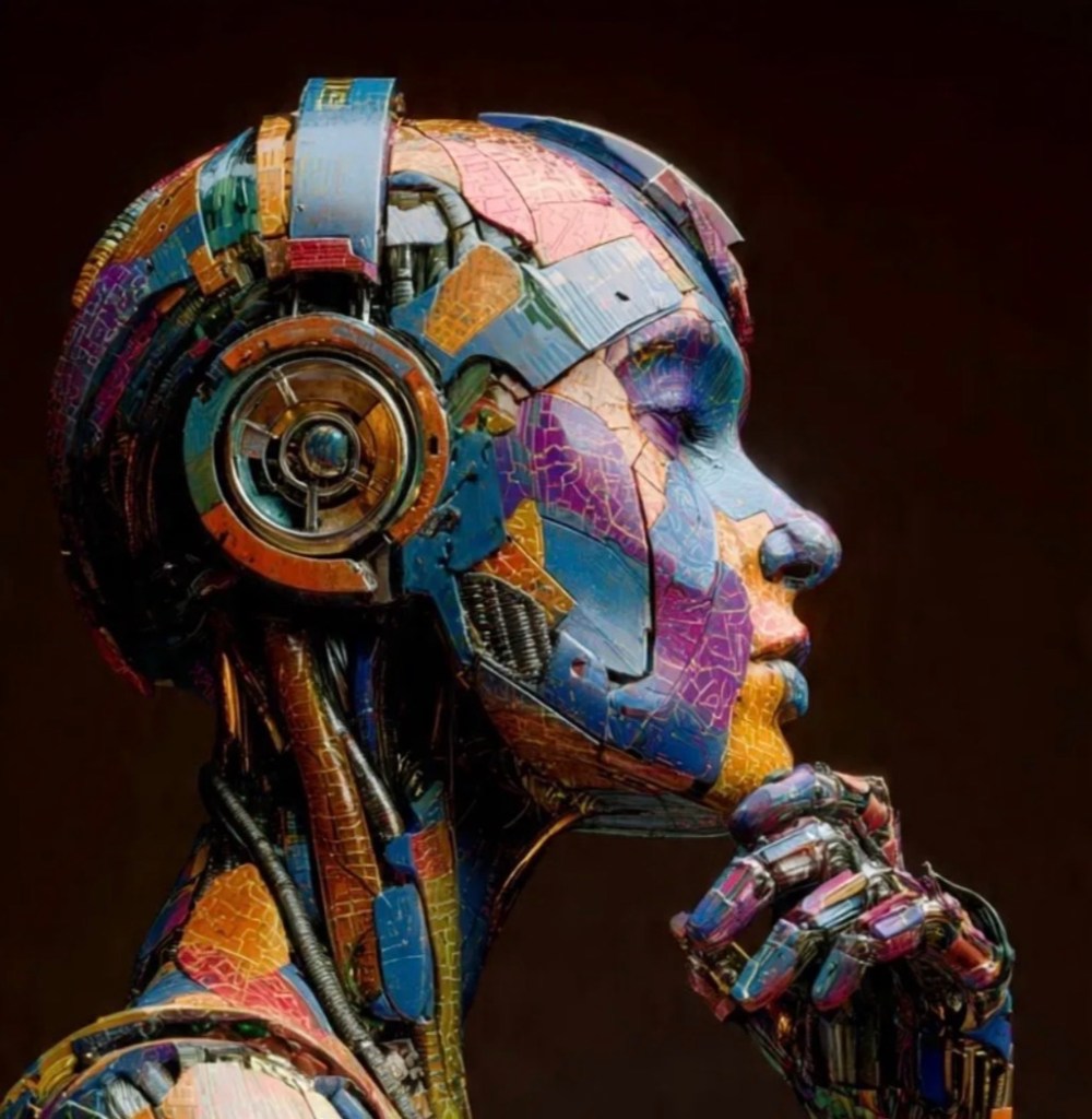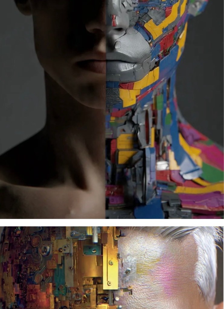 The background is dark, emphasizing the subject’s face.1. Robot Sequence: