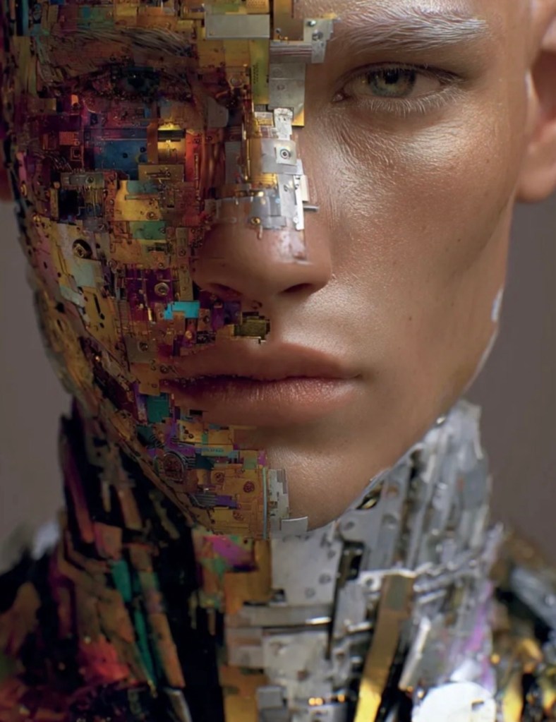 creating a cyborg-like appearance.
