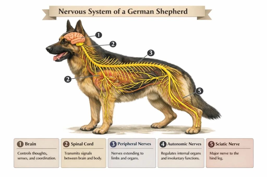 These nerves allow a German Shepherd to react quickly to commands and move with precision.
