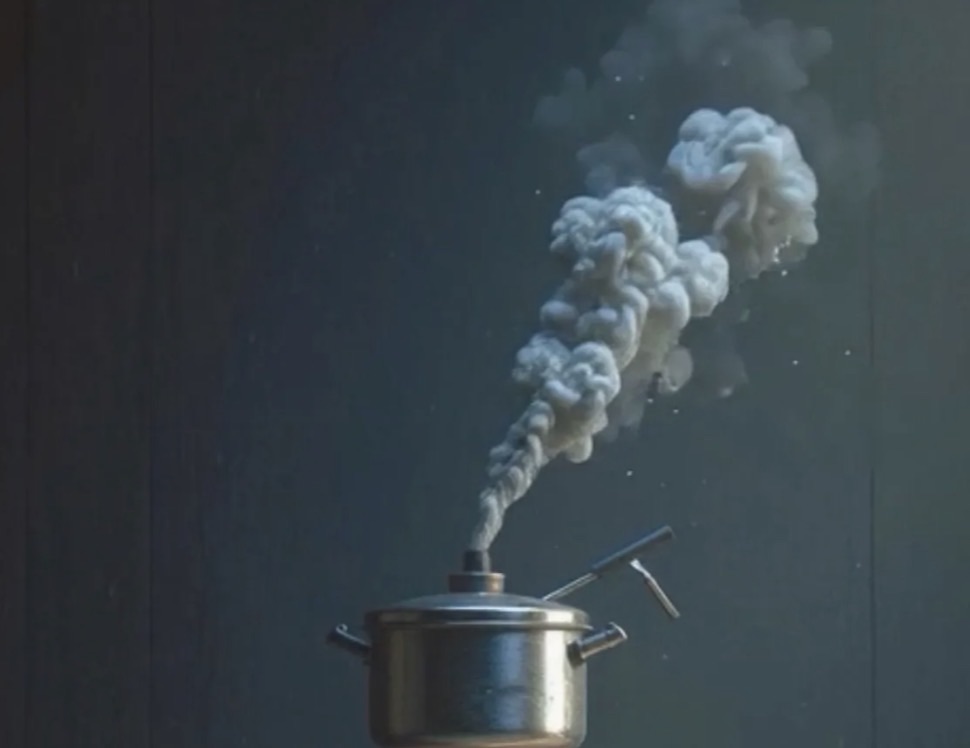 recurring cycles of protest and repression. The cooker’s steam is not chaotic; it is